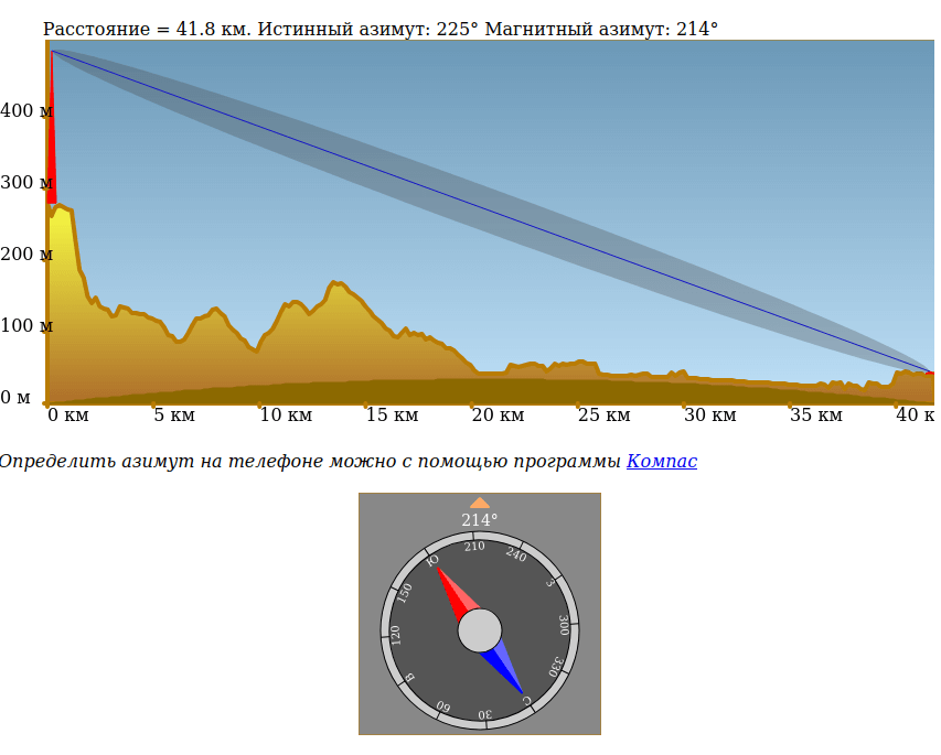 Fire, расстояние между объектами небольшое - чуть больше 18 км. Высота вышки в курске (из интернета) - 180 м. Рельеф чуть-чуть мешает около д. Старково (на графике высот справа).